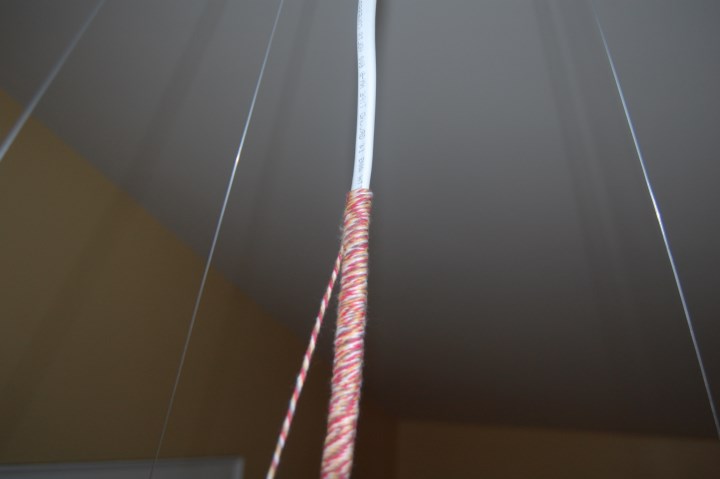 And we wired it, hung it using invisible cord and wrapped the wire with yarn.