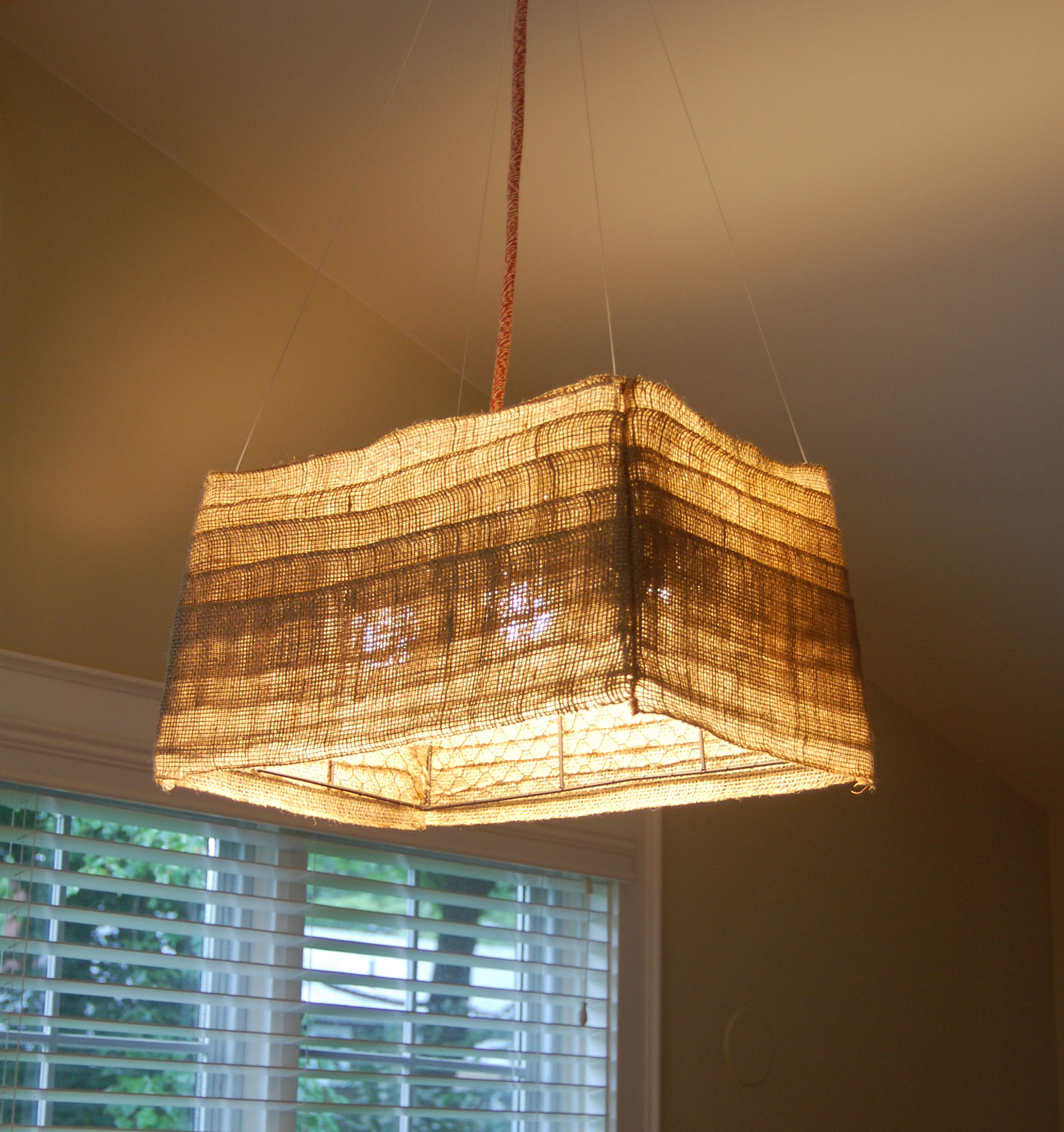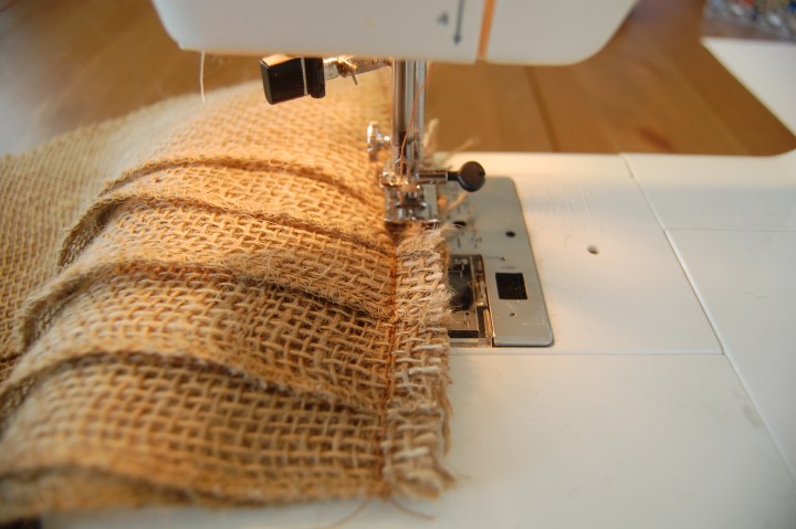 For a lamp shade, I cut burlap into pieces and sewed them together.